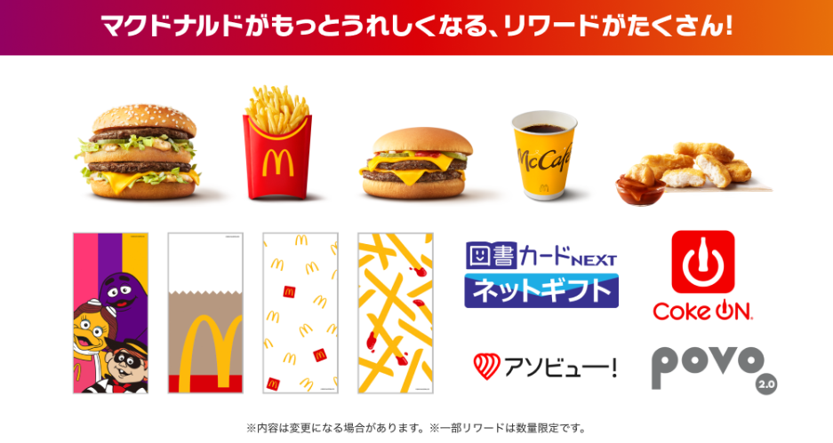 2026年01月29日 今後もMyマクドナルド リワード限定のリワードを続々追加予定!特別な体験や期間限定で登場するレアなリワードも…詳しくはマクドナルド公式アプリをチェック! 詳しくは こちらをクリック Myマクドナルド リワード | マクドナルド公式 お知らせ一覧