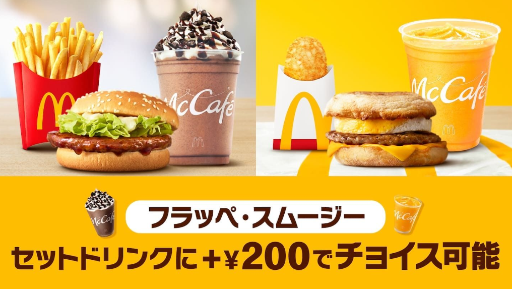 ~マクドナルドのお得なセットが、さらにバリエーション豊かに~2月25日(水)より、バリューセット®に+200円(税込)でセットドリンクとして「フラッペ」「スムージー」が選択可能に!