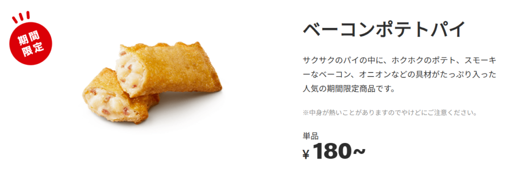 4/8(水)から期間限定で登場!毎年大好評の「ベーコンポテトパイ」